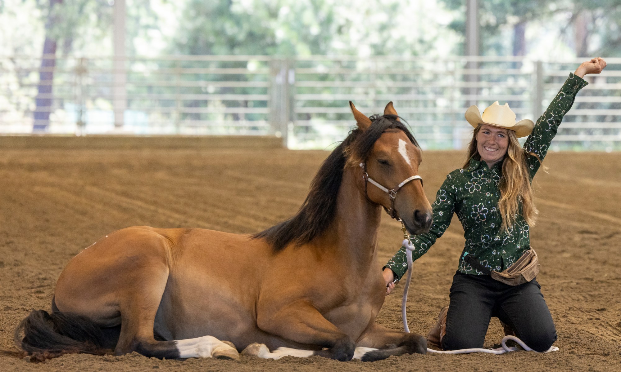 We secured our spot in the top 10 and into the freestyle competition. I typically am a big prop person when it comes to freestyles, but with Shania, any prop or obstacle I added seemed to take away from her natural beauty and refinement. So, with the help of my sisters and mom, we crafted a freestyle that focused on advanced ground-work maneuvers strung together in such a way that created a beautiful performance, showing off what Shania did best.